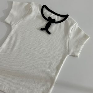 کد۱۶۰:کراپ آستین کوتاه یقه بندپاپیونی